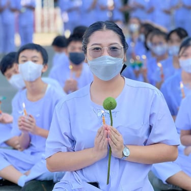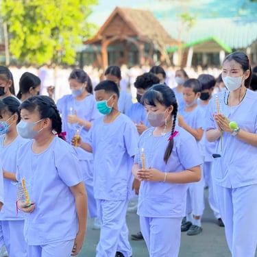 ในวันนี้ทุกคลาสได้ร่วมกันพากันเดินเข้าพรตทั้งโรงเรียน เพื่อร่วมเวียนเทียนและทำบุญในวันสำคัญนี้ นอกจากนี้ นักเรียนยังได้รับพรจากพระภิกษุ นอกจากความสันติสุขแล้ว นักเรียนยังได้รับการสอนแนวทางในการปฏิบัติตามศาสนาพุทธอย่างถูกต้อง